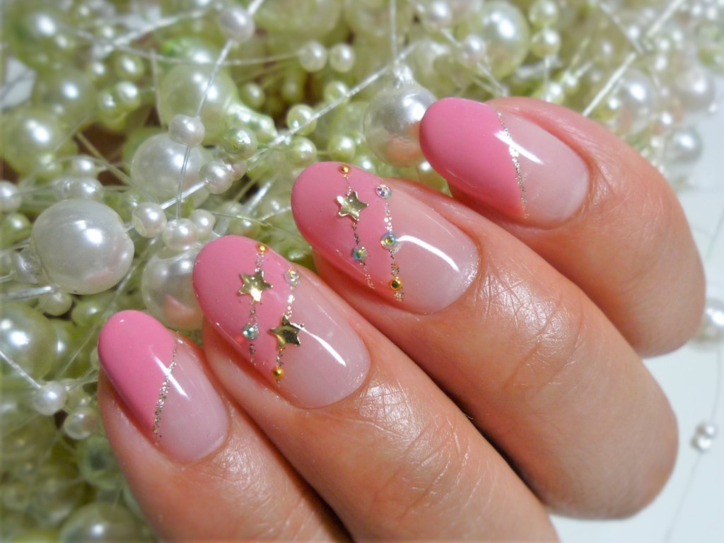 【ハンドキャンペーン!!】斜めフレンチ+ラメライン+ストーン