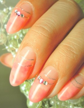 【2月キャンペーン!!】逆フレンチ+マーブル柄+ラメライン+ストーン