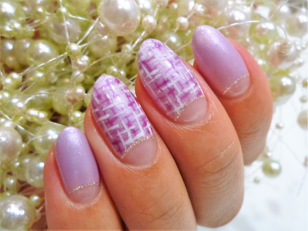 【1月キャンペーン!!】逆フレンチ+ラメライン+ツイード柄