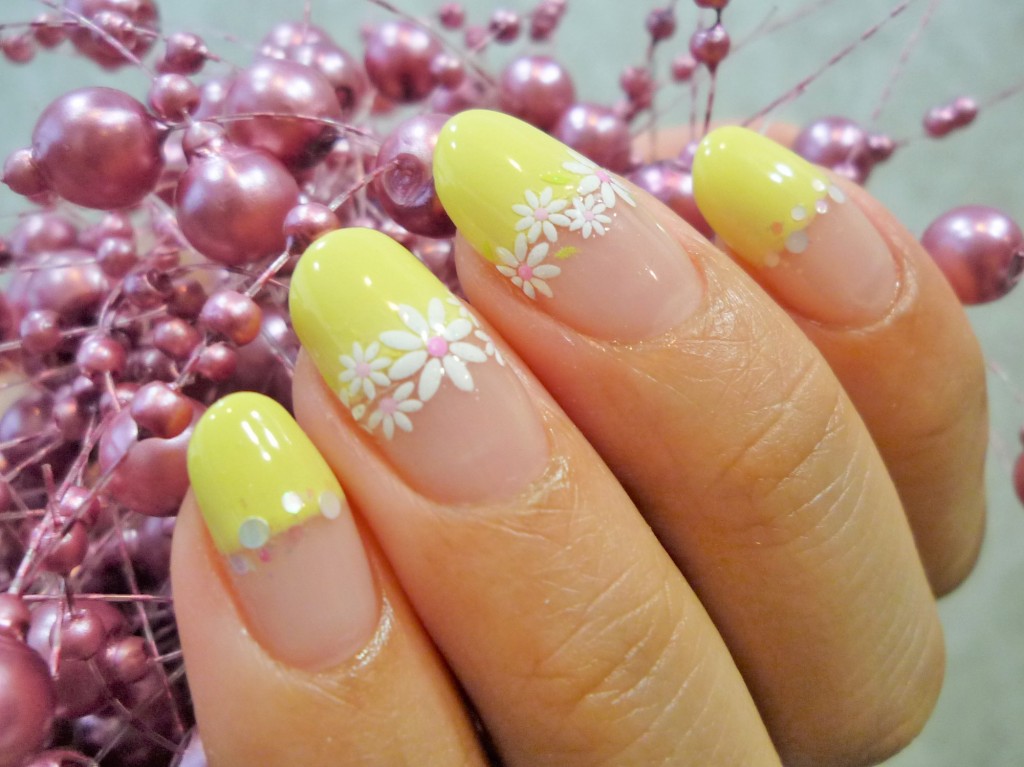 【4月キャンペーン!!】変形フレンチ+お花+ラメ&ホログラム