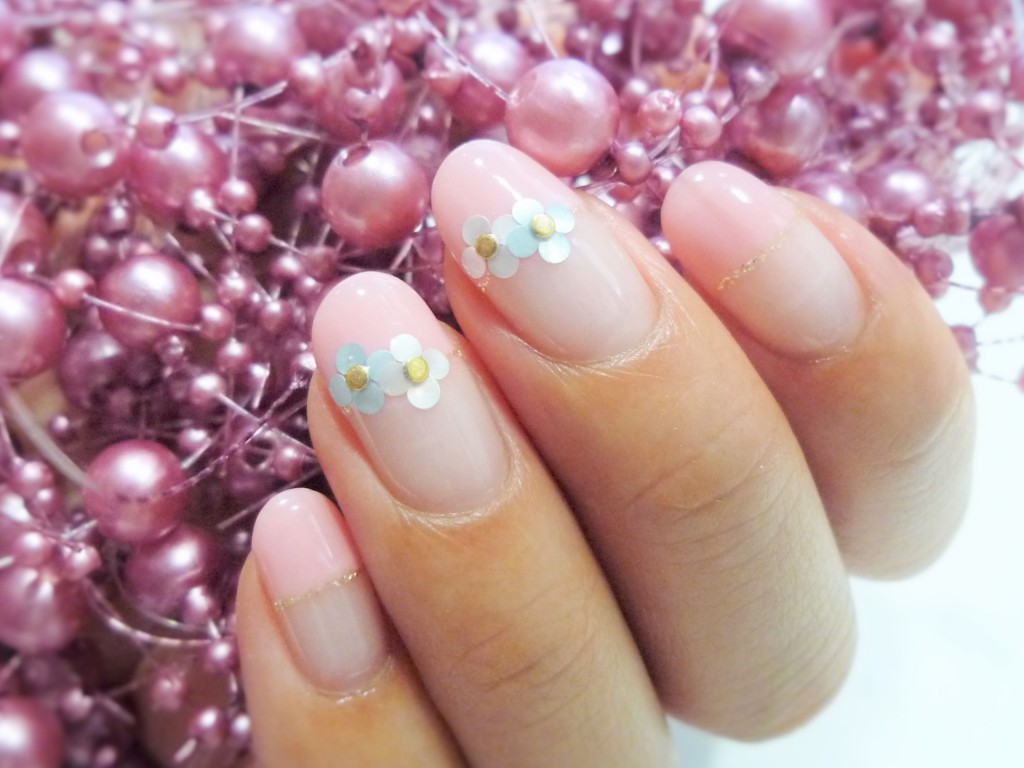 【4月キャンペーン!!】変形フレンチ+ラメライン+花