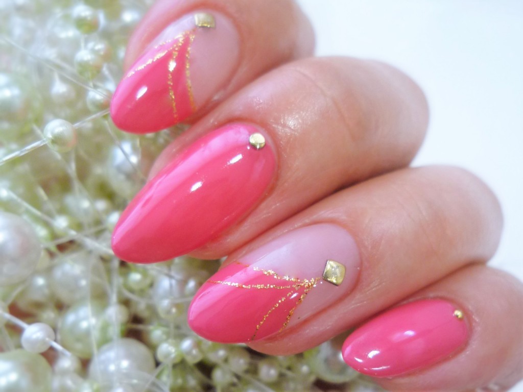 【5月キャンペーン!!】カラー&変形フレンチ+ラメライン+スタッズ