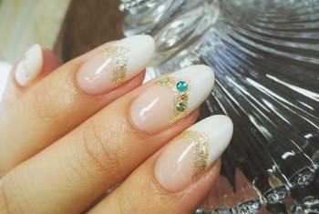 【7月キャンペーン!!】変形フレンチ+ラメ+ストーン