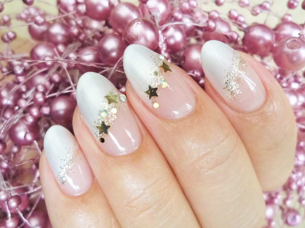 【7月キャンペーン!!】斜めフレンチ+ラメ+ストーン