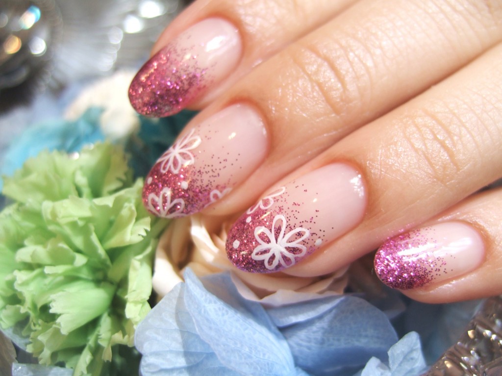 【8月キャンペーン!!】ラメグラデーション+花