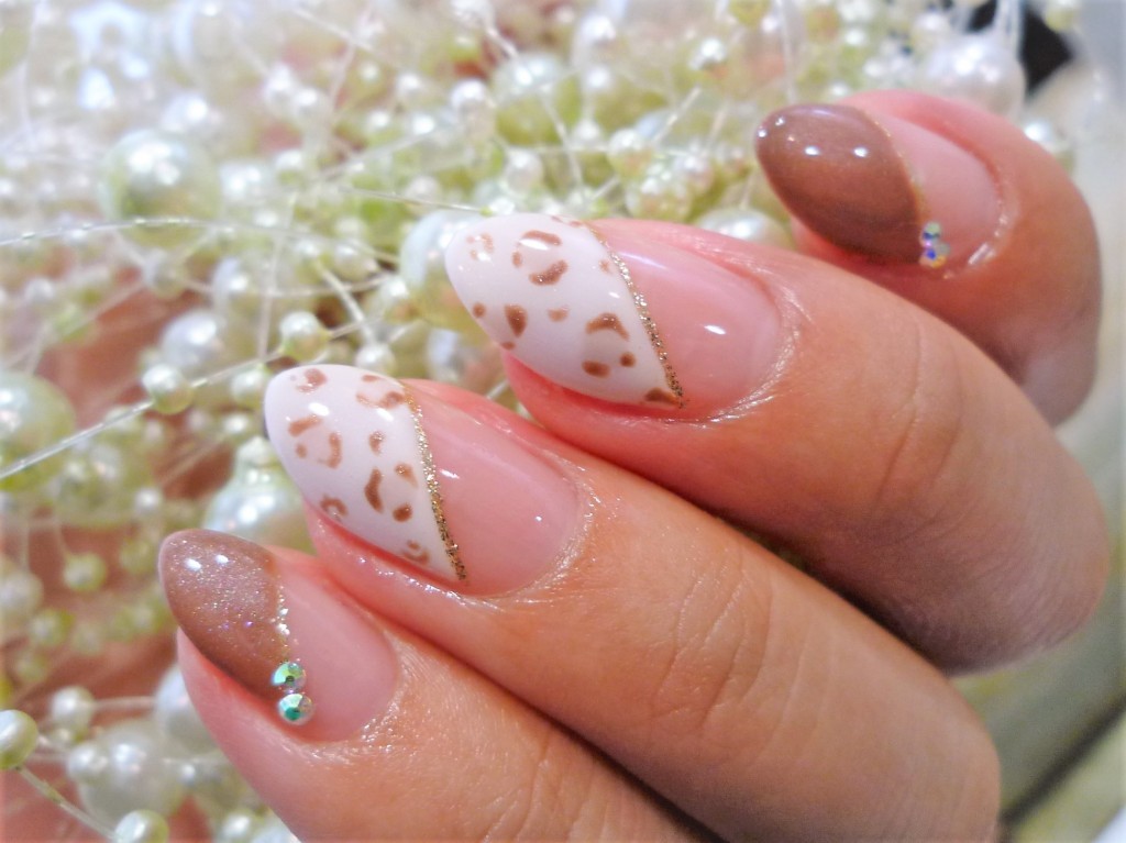 2017年11月ハンドキャンペーン!!【斜めフレンチ+ヒョウ柄+ストーン】