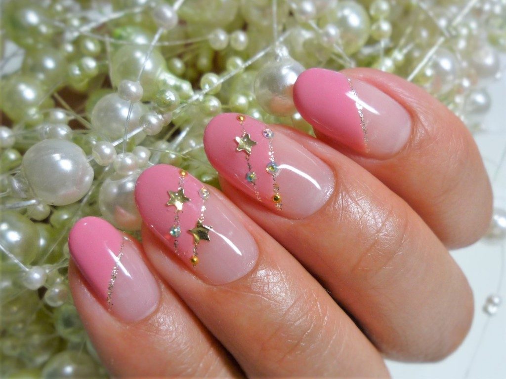 2018年8月ハンドキャンペーン【斜めフレンチ+ラメライン+ストーン】
