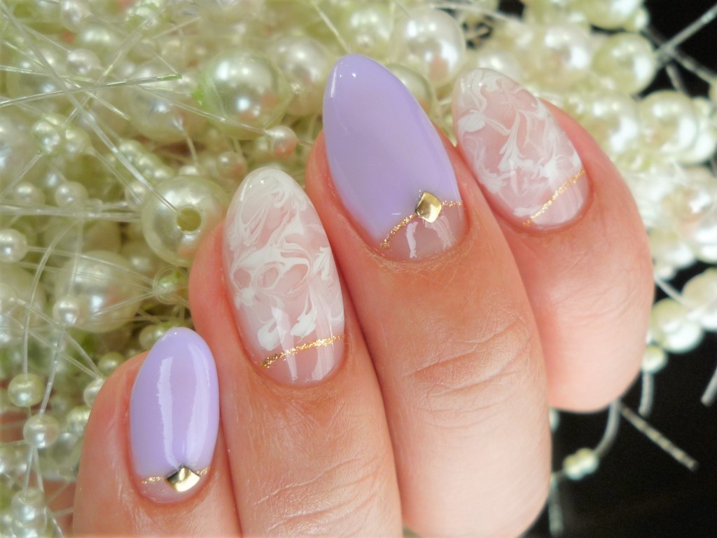 2019年4月ハンドキャンペーン【逆フレンチ+マーブル柄+ラメラインストーン】